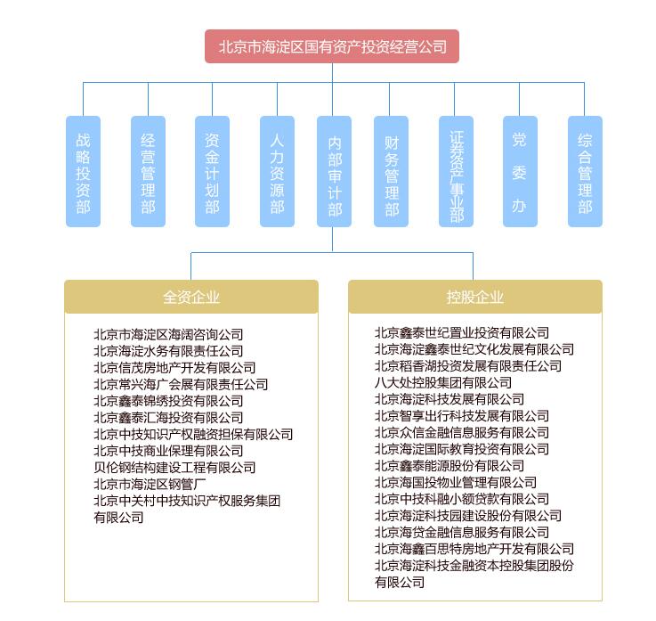 北京市海淀區(qū)國有資產(chǎn)投資經(jīng)營有限公司(簡稱“海淀國投公司”),國有獨(dú)資公司,成立于1992年,注冊資20億元,資產(chǎn)總額1200億元。旗下?lián)碛猩鲜泄救遥喝郗h(huán)保(300072)、神州高鐵(000008)和中泰橋梁(002659),其他全資、控股以及參股企業(yè)103家。