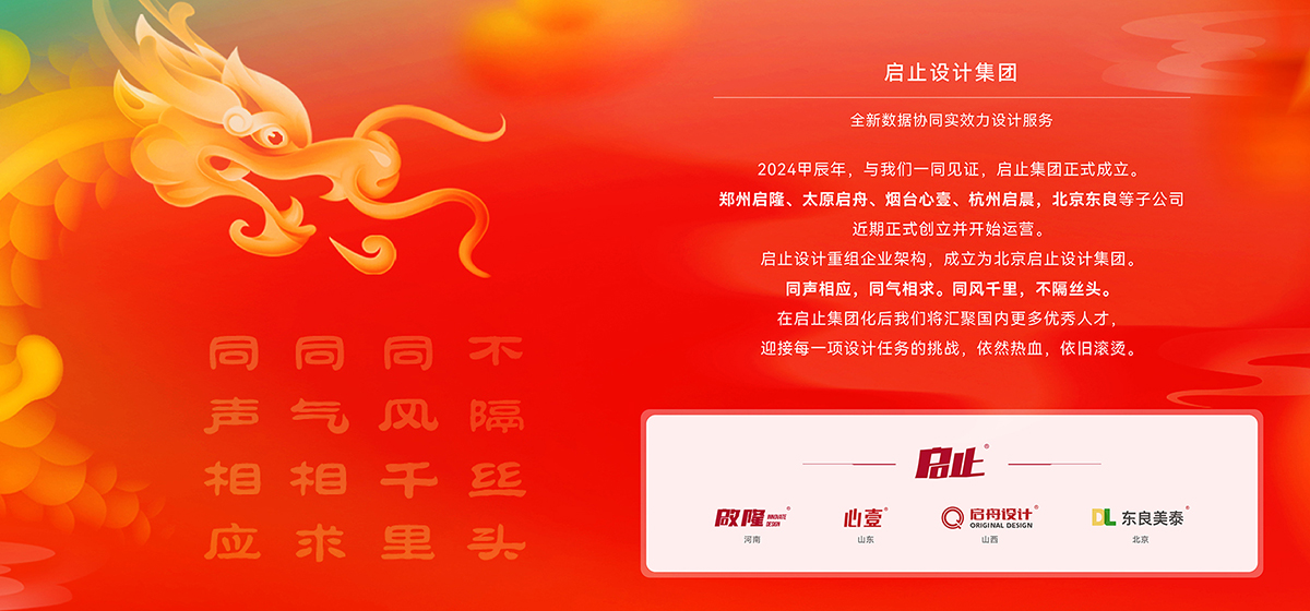 在2024甲辰年這一歷史性的時(shí)刻,啟止集團(tuán)正式成立,標(biāo)志著我們?cè)谠O(shè)計(jì)領(lǐng)域的嶄新征程的開(kāi)始。同時(shí),我們的子公司——鄭州啟隆、太原啟舟、煙臺(tái)心壹、杭州啟晨以及北京東良,也齊齊亮相,共同為啟止集團(tuán)的宏偉藍(lán)圖添磚加瓦。