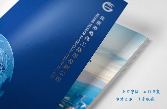 啟止視覺為北京市電信工程局有限公司設(shè)計并制作了企業(yè)宣傳冊,封面使用專色藍,提高了品質(zhì)感